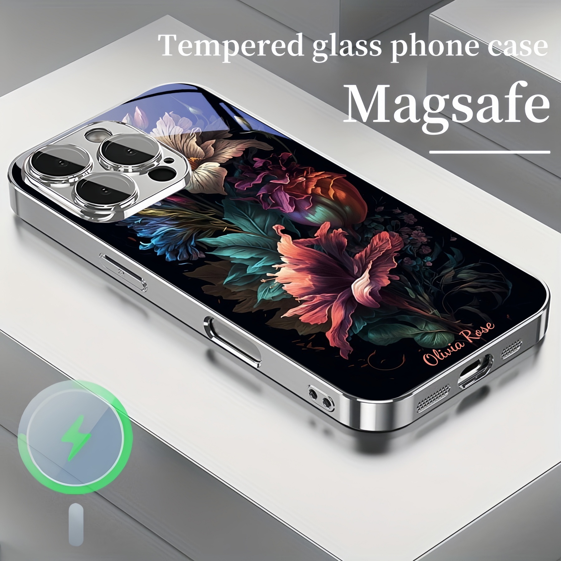 Personalized Vintage Floral Magsafe Tempered Glass Plating Case