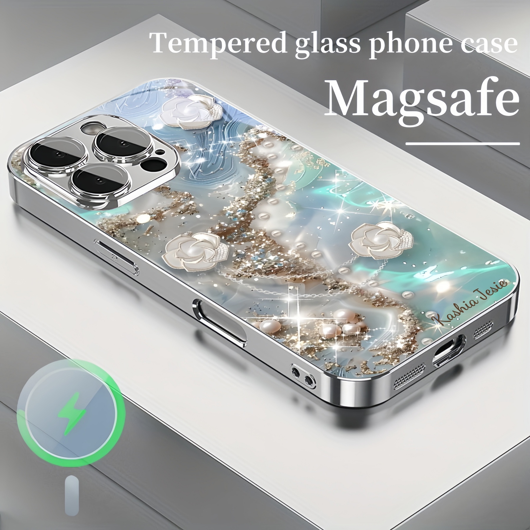 Personalized Pearl Flower String Magsafe Tempered Glass Plating Case