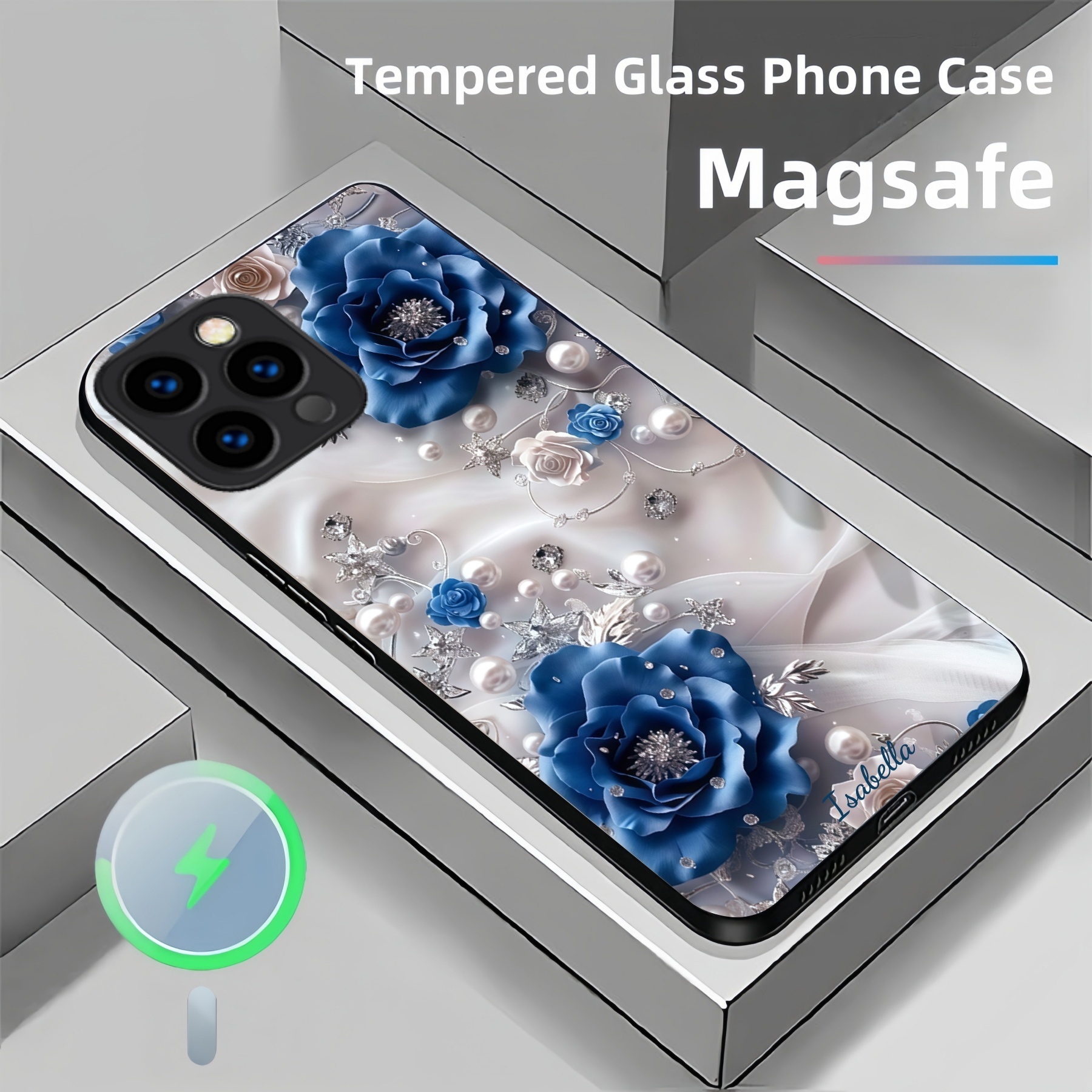 Personalized Aesthetic Blue Rose Magsafe Tempered Glass Case