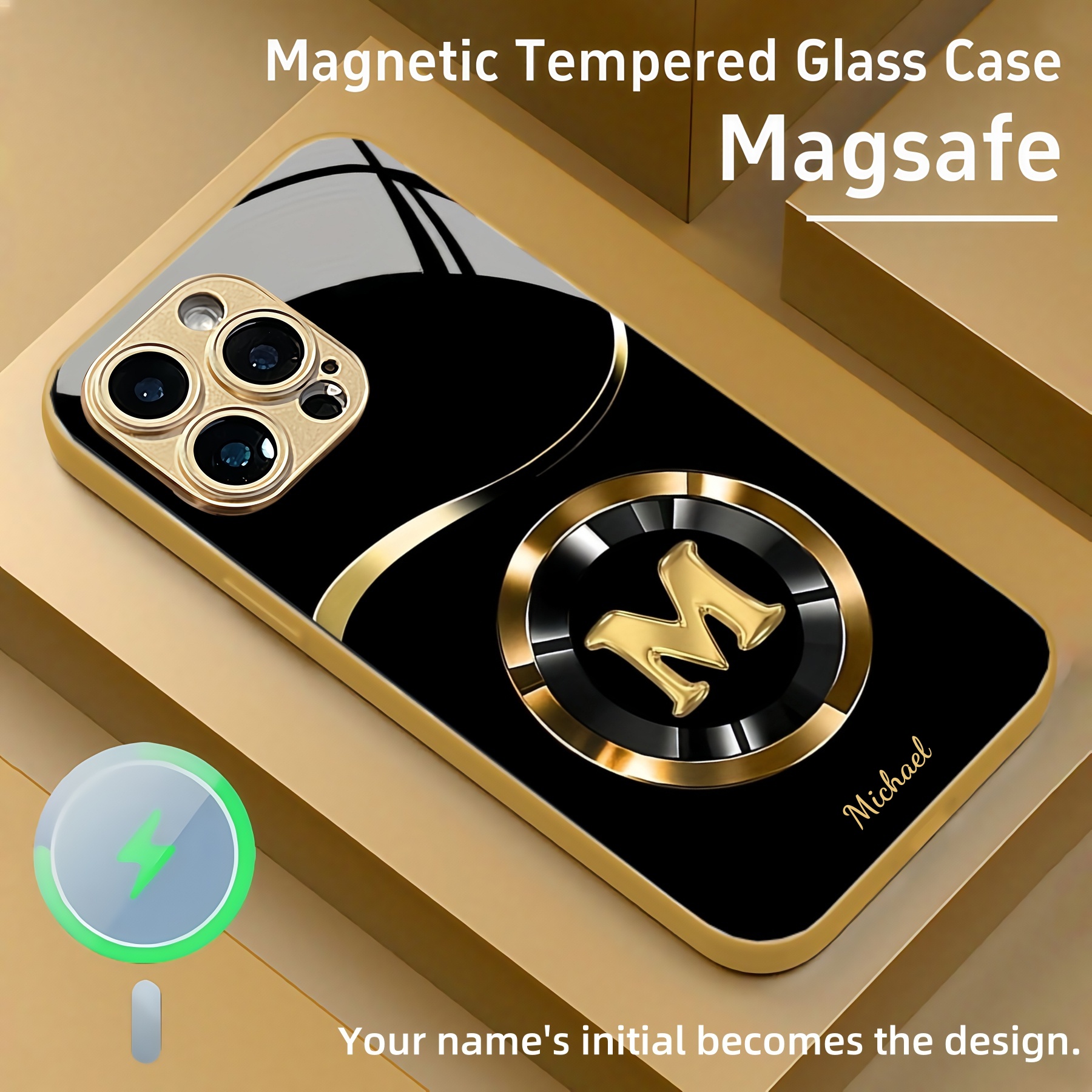 Personalized Initial & Name Magsafe Tempered Glass Case