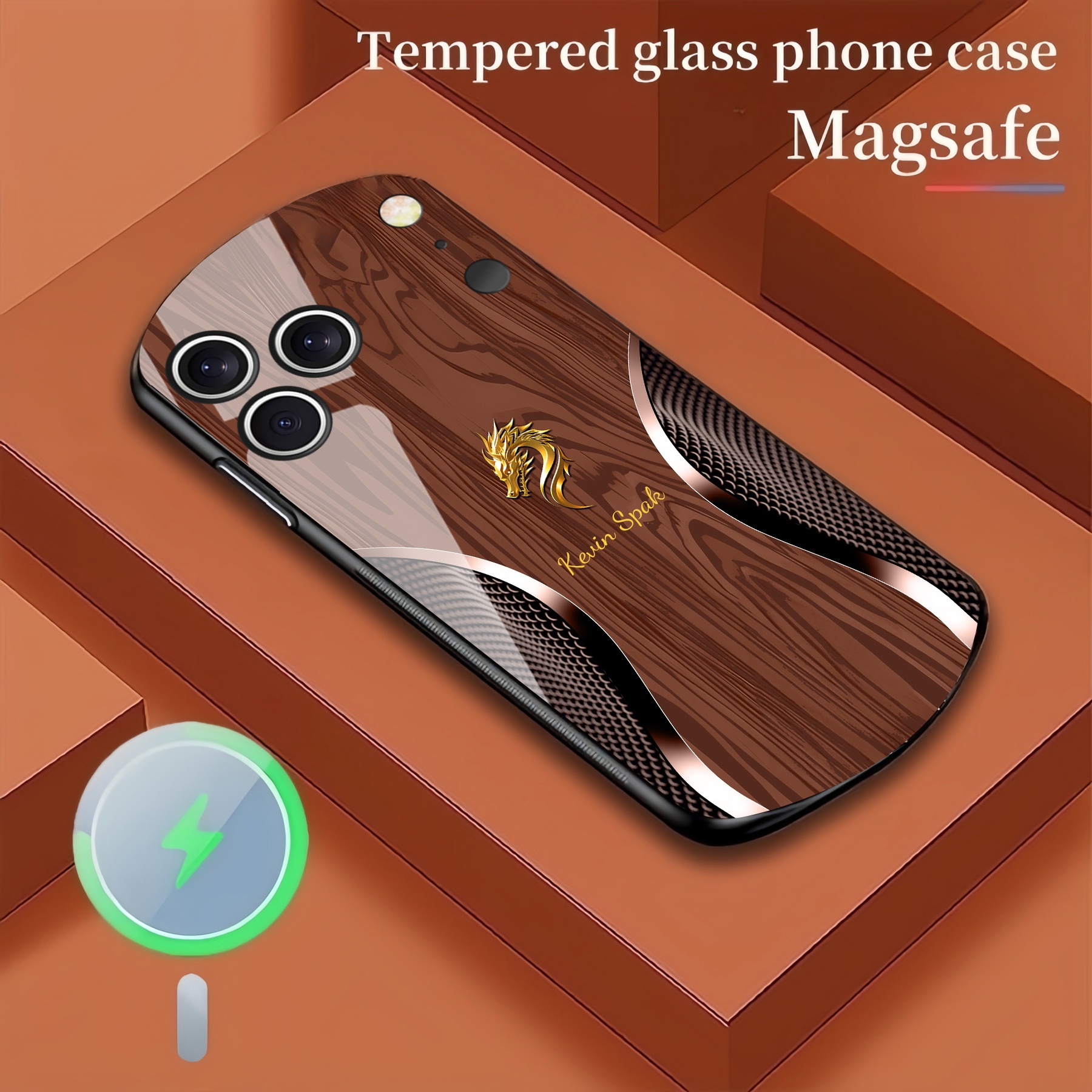 Personalized Dragon Wood Grain Magsafe Tempered Glass Phone Case