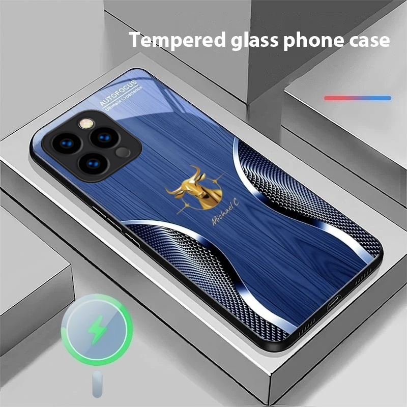 Personalized Wood Grain Bull Magsafe Glass Phone Case