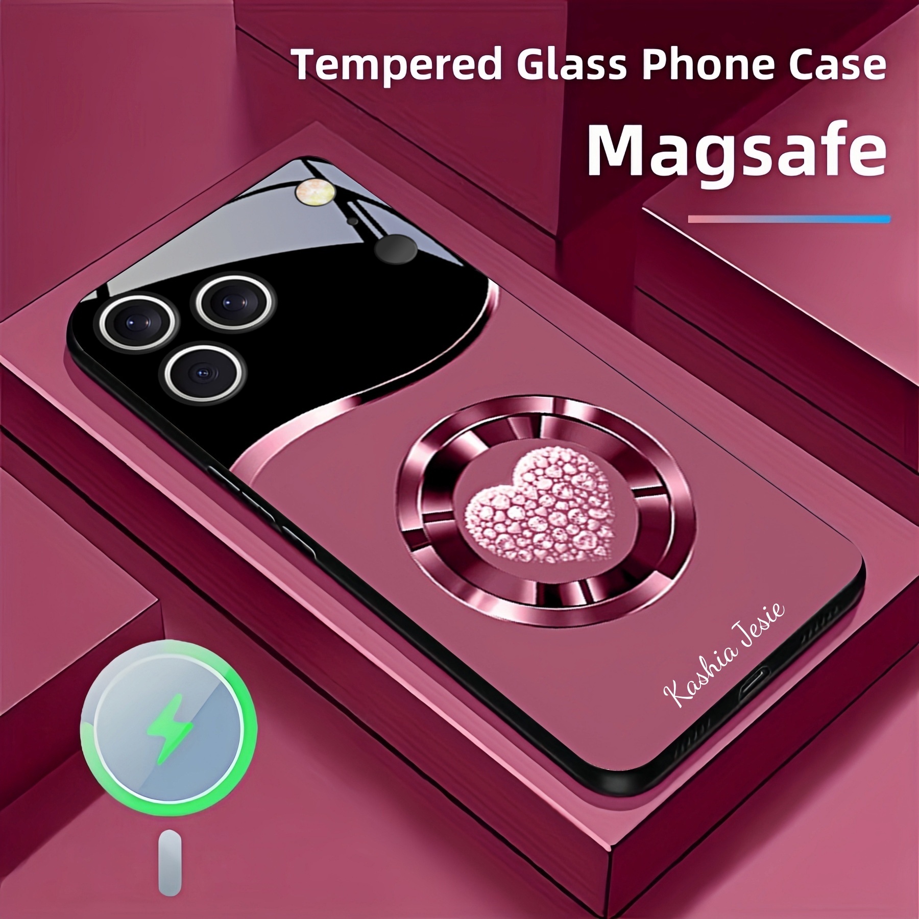 Personalized Diamond Heart Ring Magsafe Tempered Glass Case
