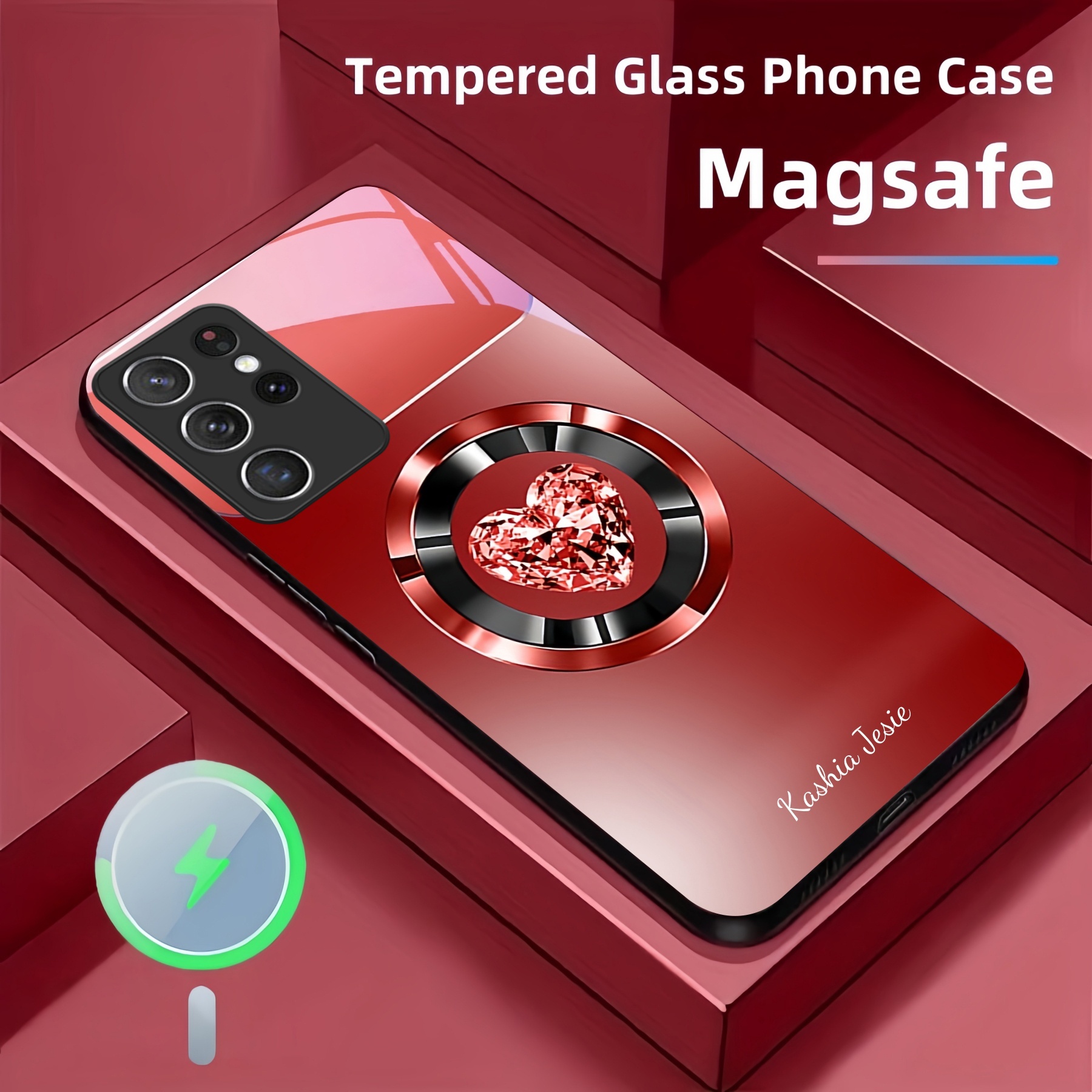 Personalized Diamond Heart Ring Magsafe Tempered Glass Case