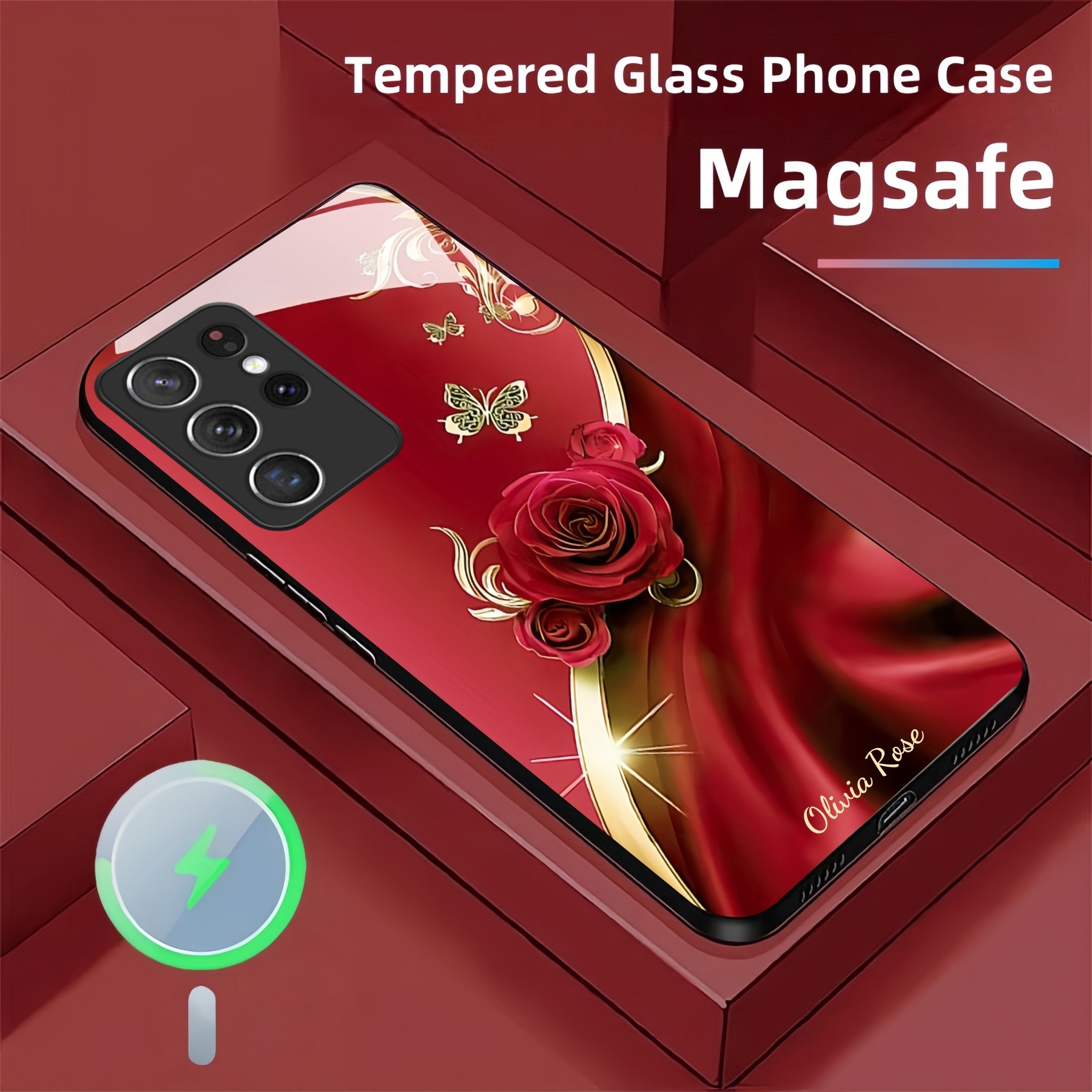 Personalized Rose Silk Magsafe Tempered Glass Case