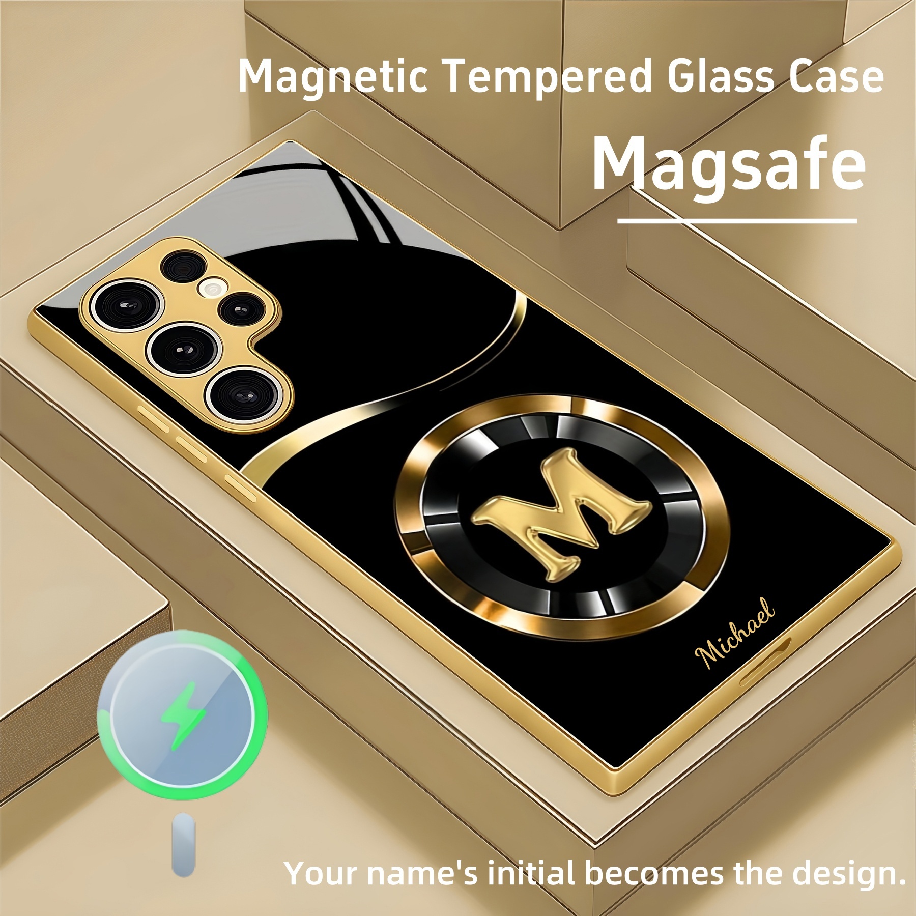 Personalized Initial & Name Magsafe Tempered Glass Case