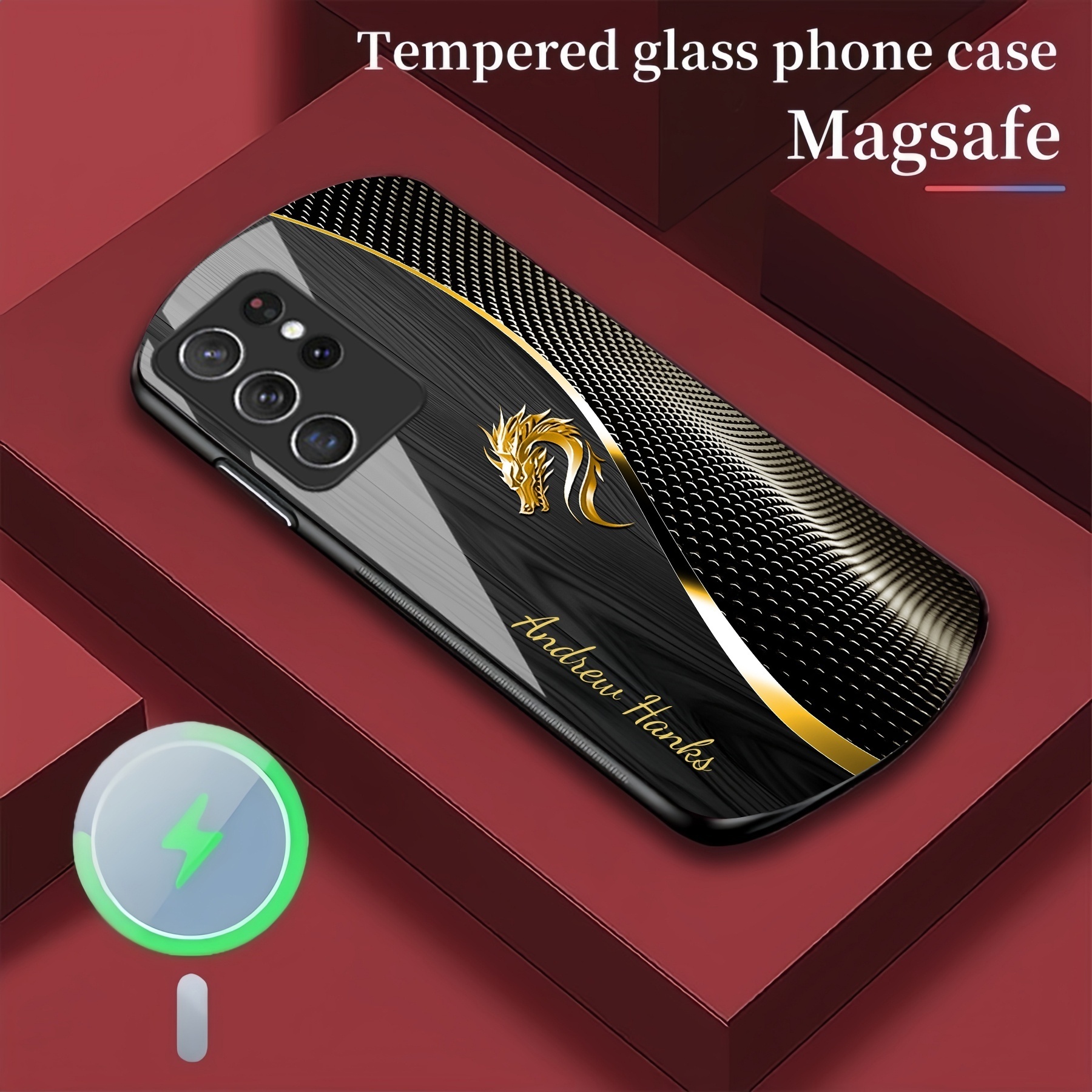 Personalized Wood Grain Dragon Magsafe Tempered Glass Case