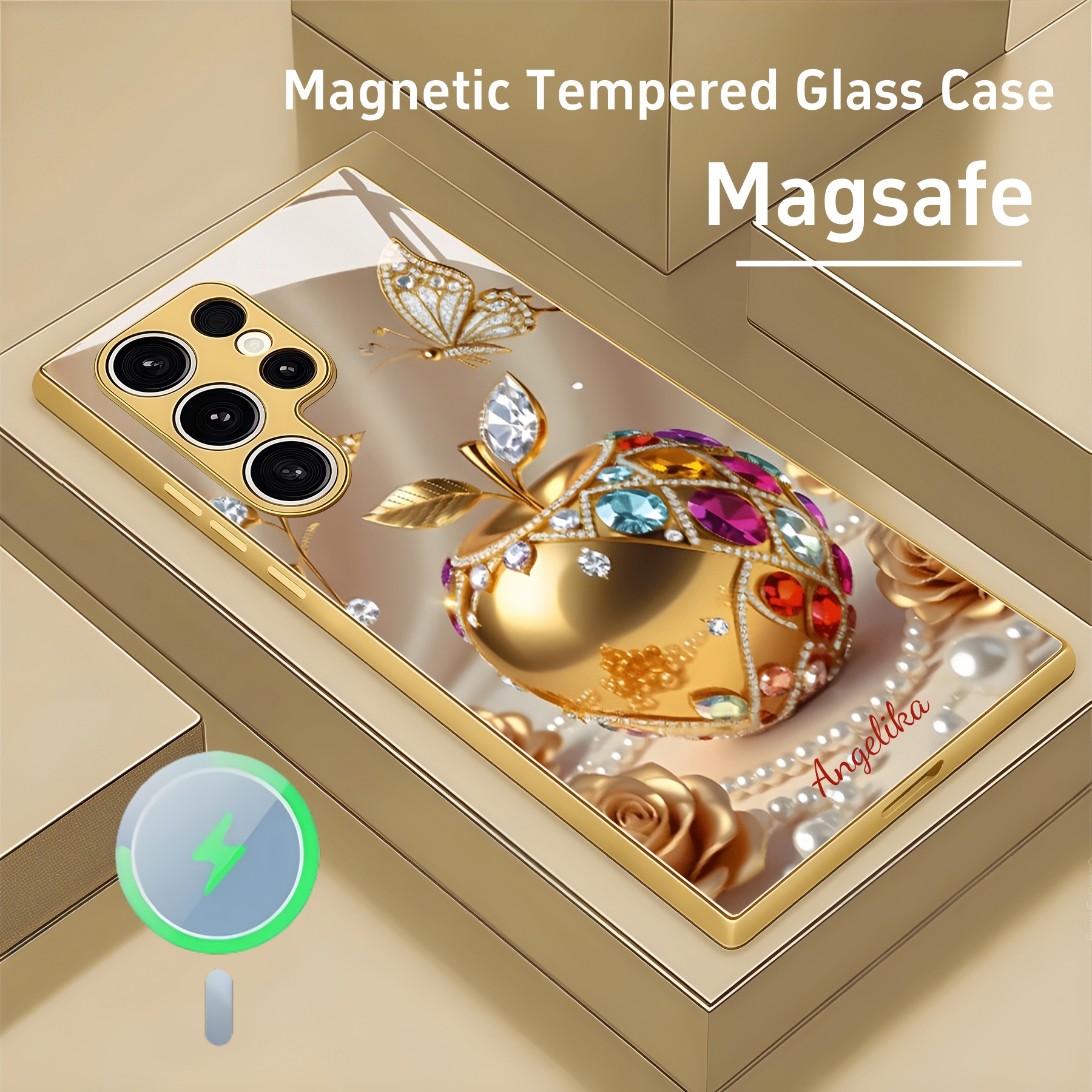 Personalized Luxury Crystal Fruit Magsafe Tempered Glass Case
