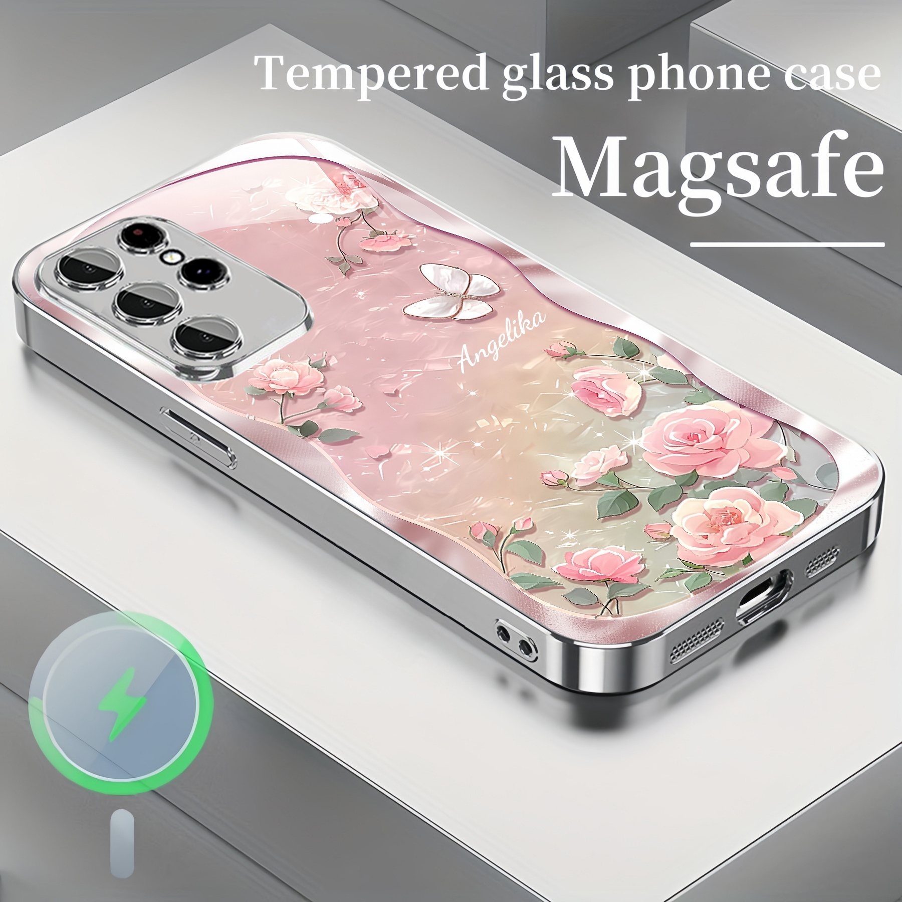 Personalized Rose Butterfly Magsafe Tempered Glass Plating Case