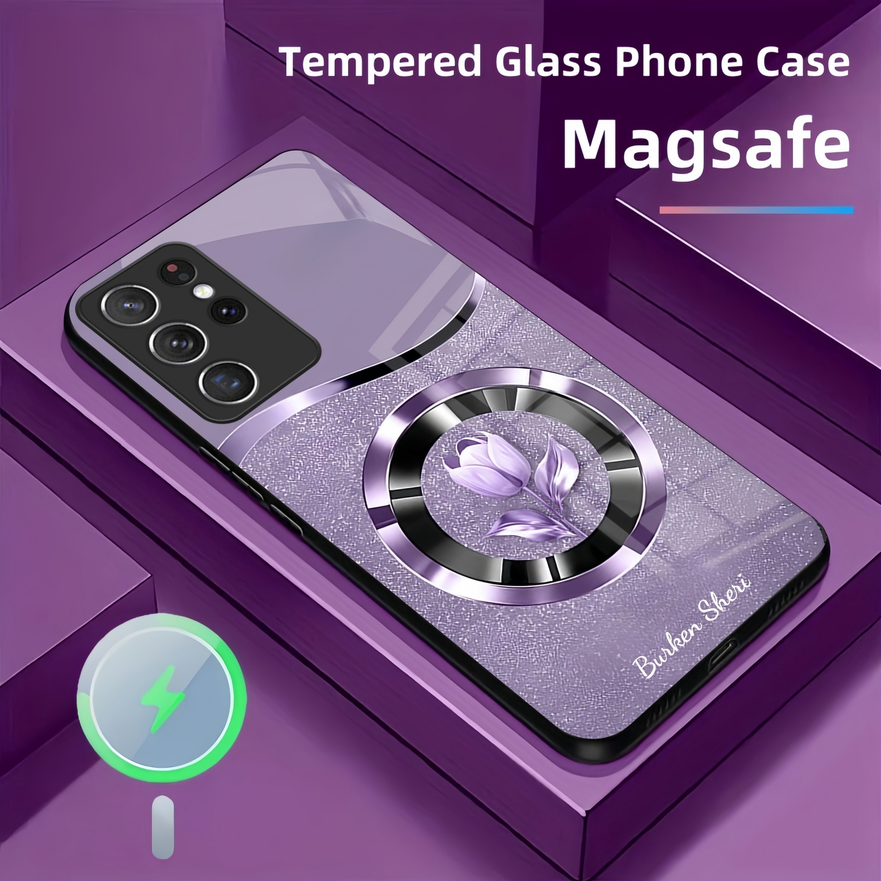 Personalized Glitter Tulip Ring Magsafe Tempered Glass Case